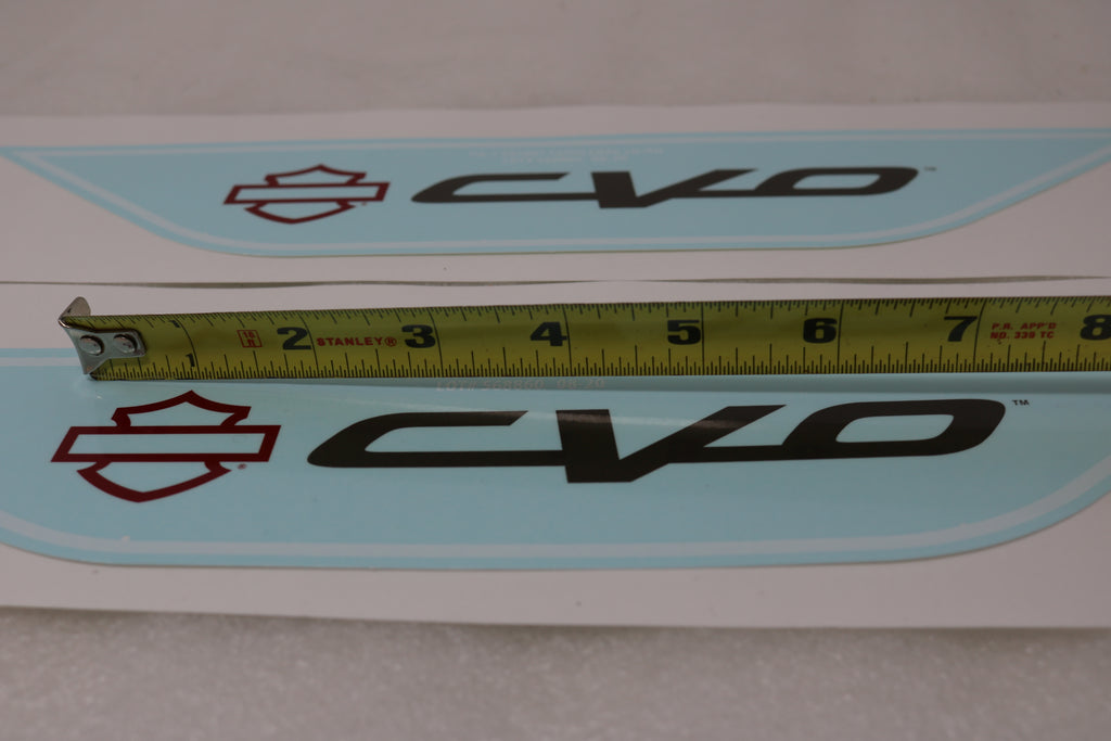 Brand new OEM original Harley-Davidson CVO screamin eagle saddlebag decals. As seen on 2019-2021 Harley Screamin Eagle Street glide, road glide, ultra. These can also be used on the fender, gas tank, saddlebags, fairing, etc. This is a pair. These are waterslide decals, simply put in luke warm water prior to applying to a clean surface, when the backing starts to be able to slide off, place it on the part, be patient and let seal before you take the front off. This is very easy to do and there are several videos on the internet. You can also cut it use the "bar and shield" logo separate than the "CVO" logo. The bar and shield logo is red and the CVO logo is dark silver. ***Please note the white trim you see around the edges is not part of the decal and comes off when it is applied*** The fender, tank, and fairing are not included and are for demonstrational purposes only!