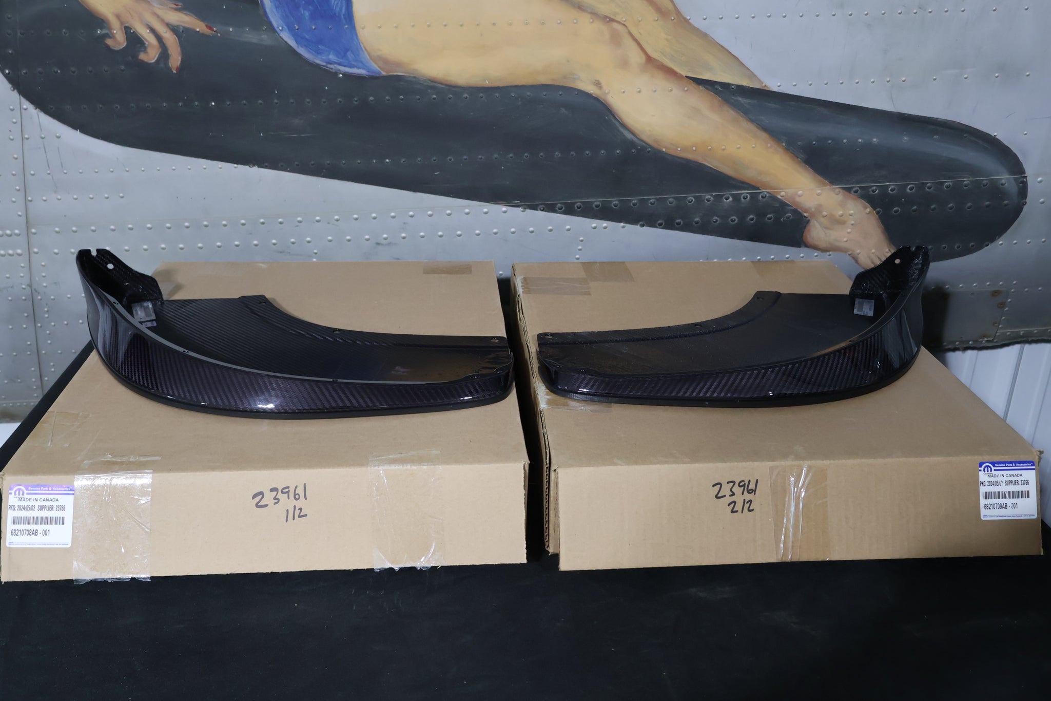 authentic OEM Mopar carbon fiber front splitter pair, including