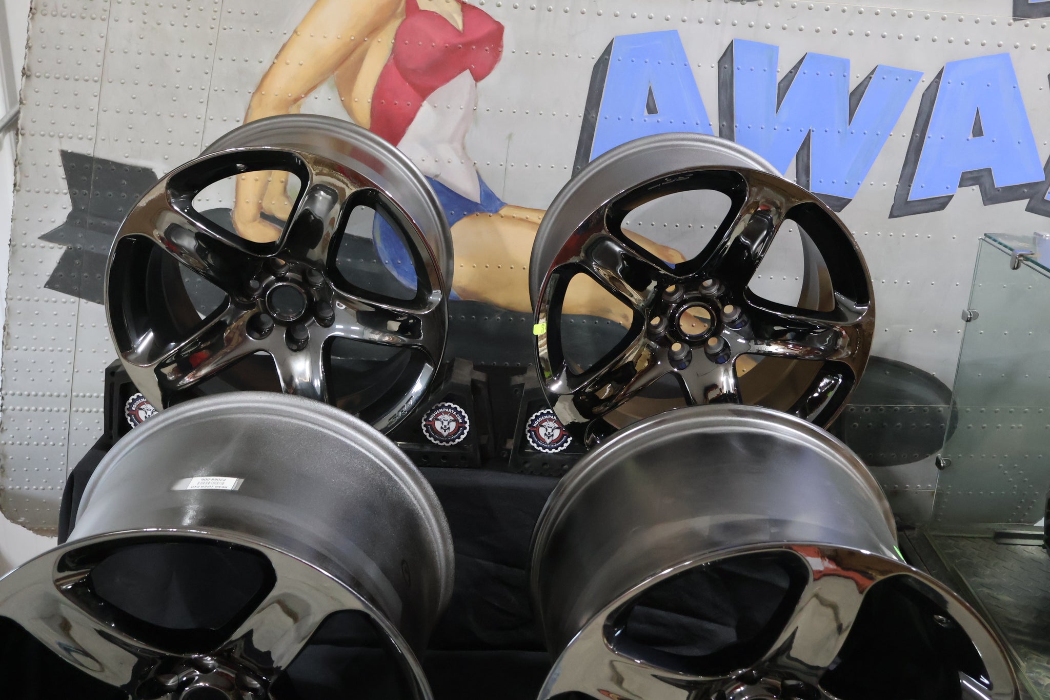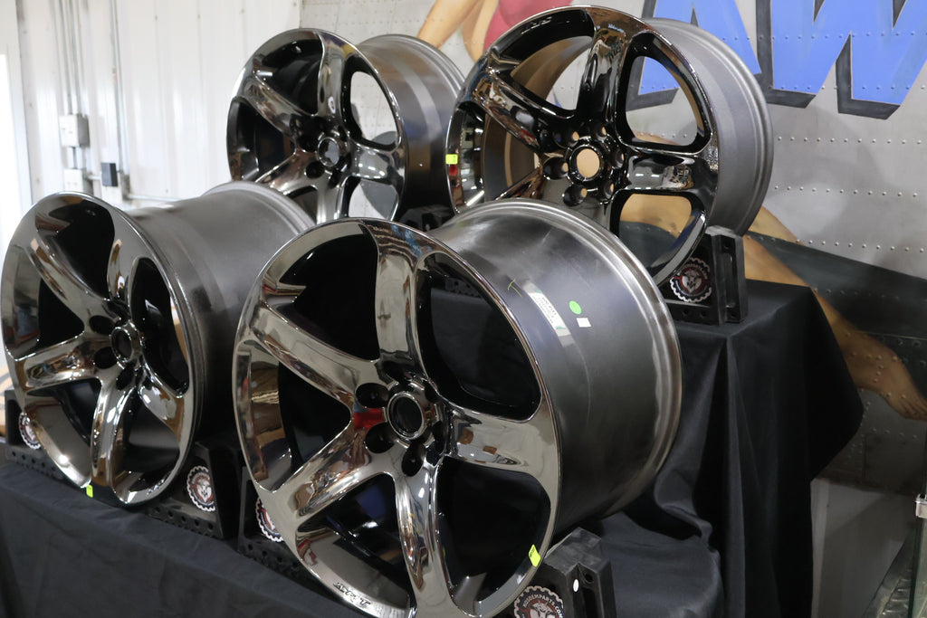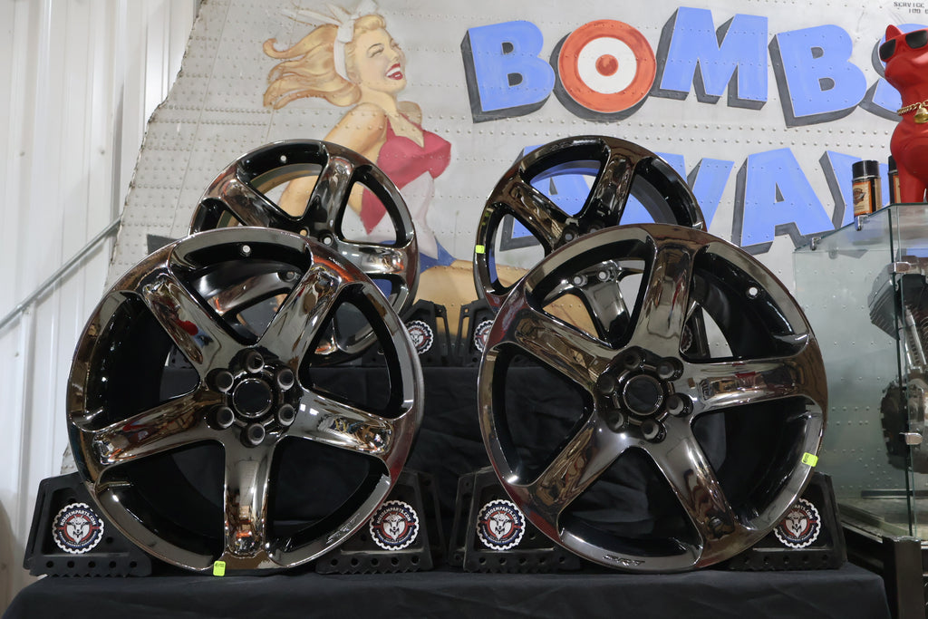 Finish Note: These wheels are finished in black vapor chrome, which has a dark, reflective tint. Due to lighting and camera flash, the true finish can appear lighter in photos. In person, they offer a rich, shadowed chrome appearance that enhances the Viper’s aggressive styling.