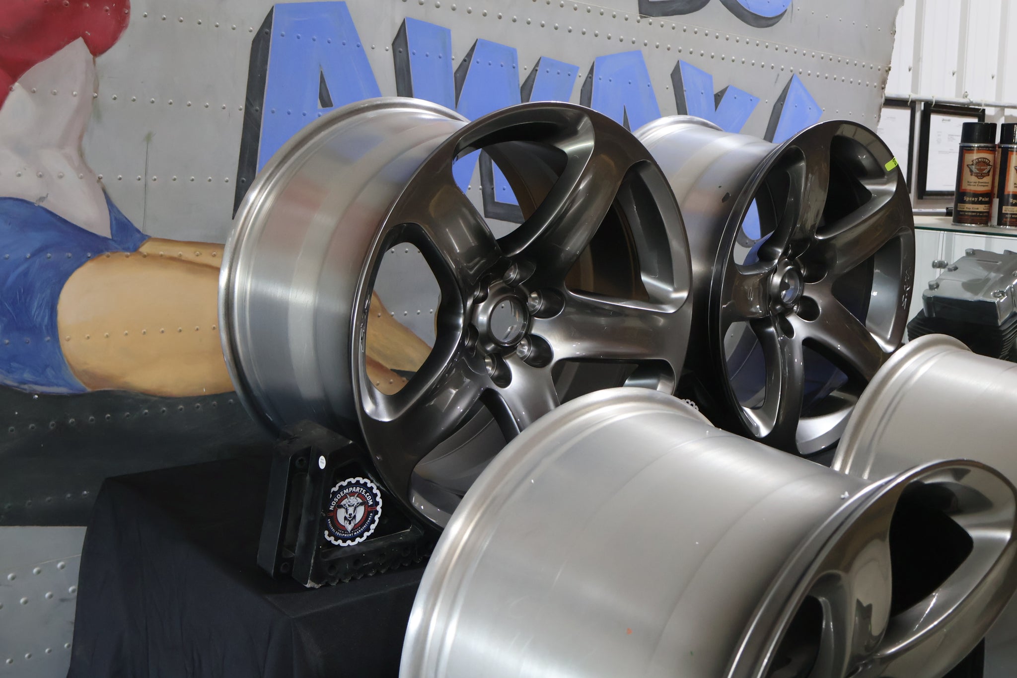 While the rear wheels match the factory 2003–2010 Viper rear size exactly, the front wheels are ½ inch wider than the 1999–2010 factory specification and feature a 20mm more aggressive offset.
